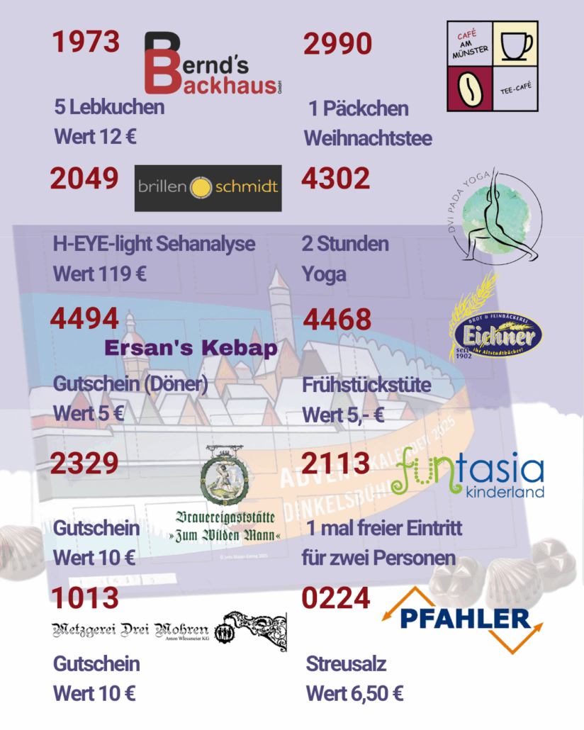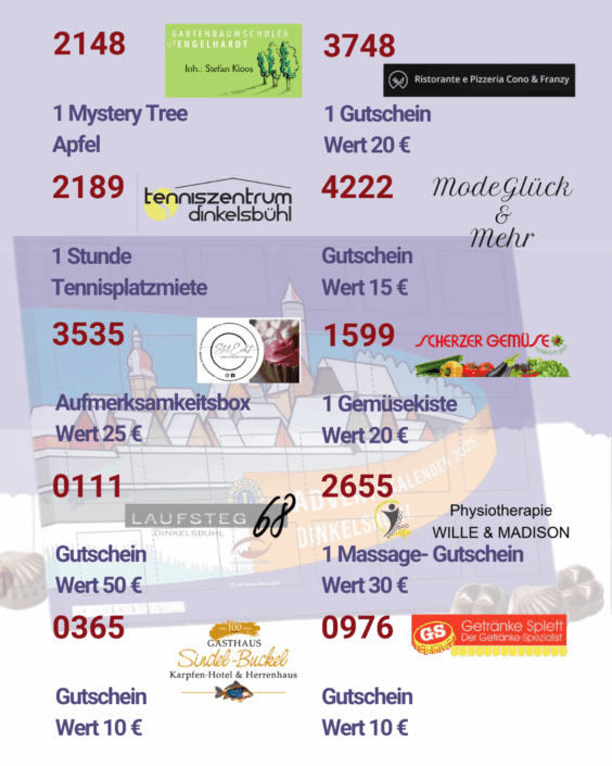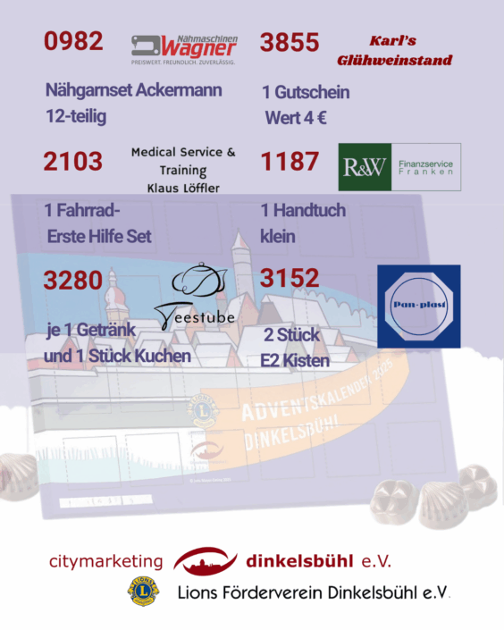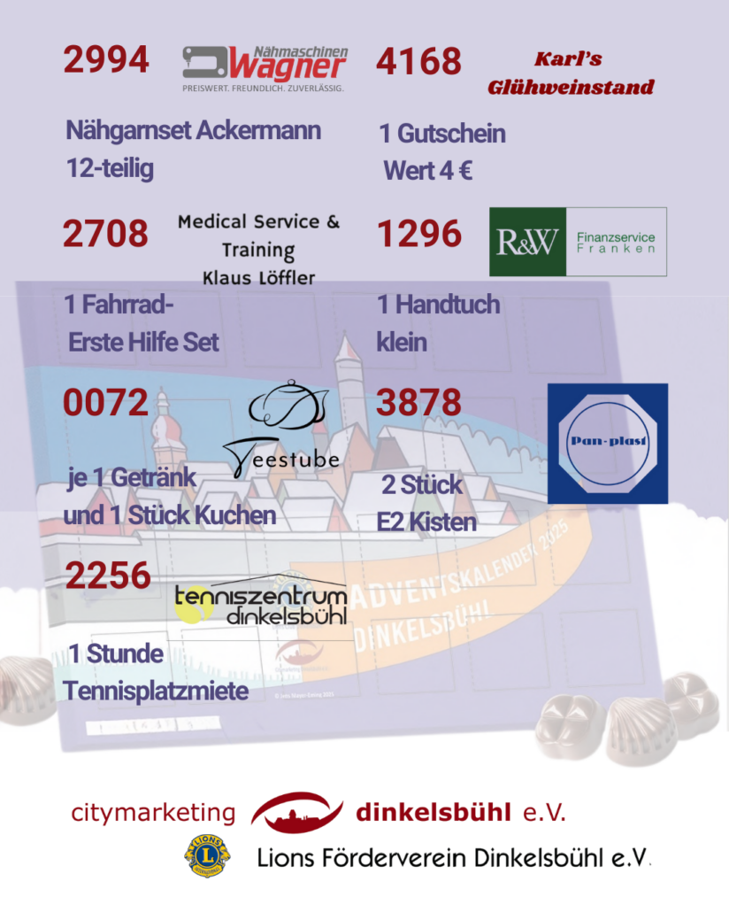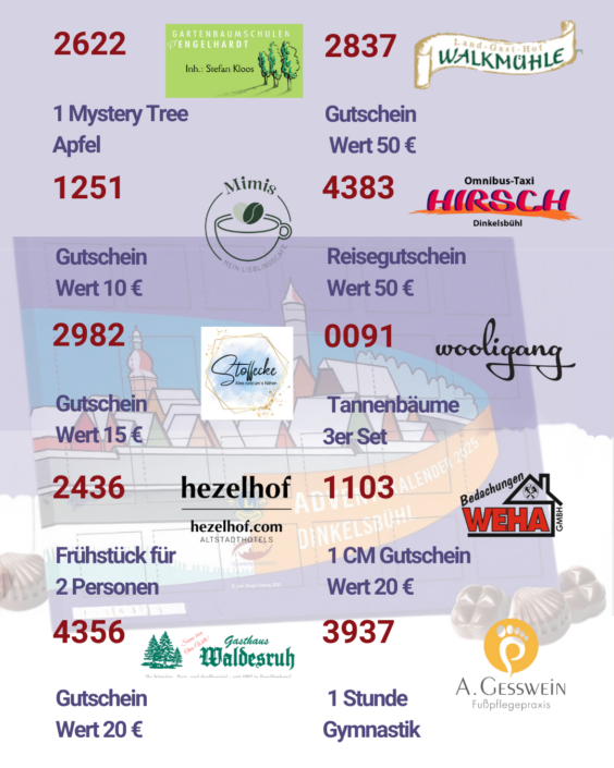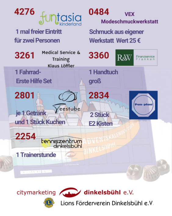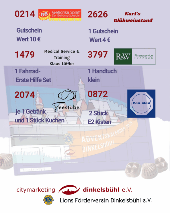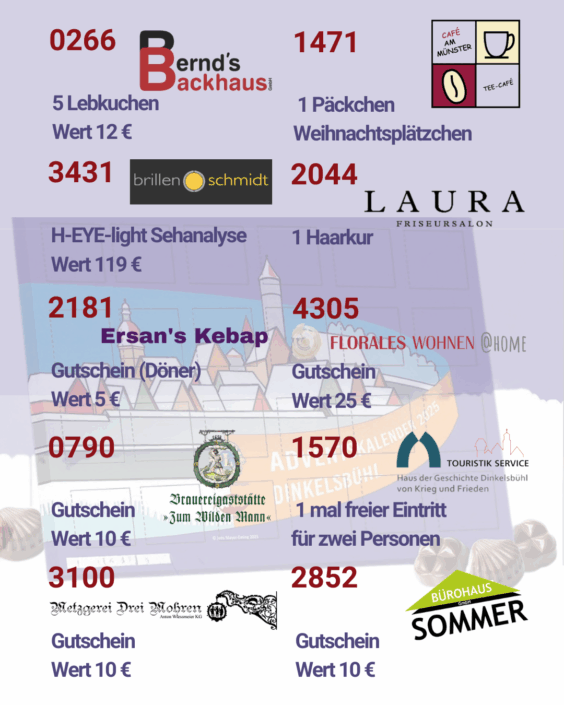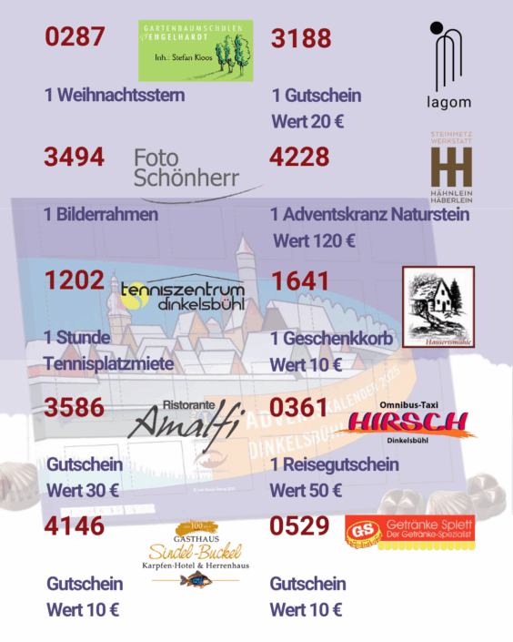 Dinkelsbühler Adventskalender – Gewinne und Gewinn- Nummern