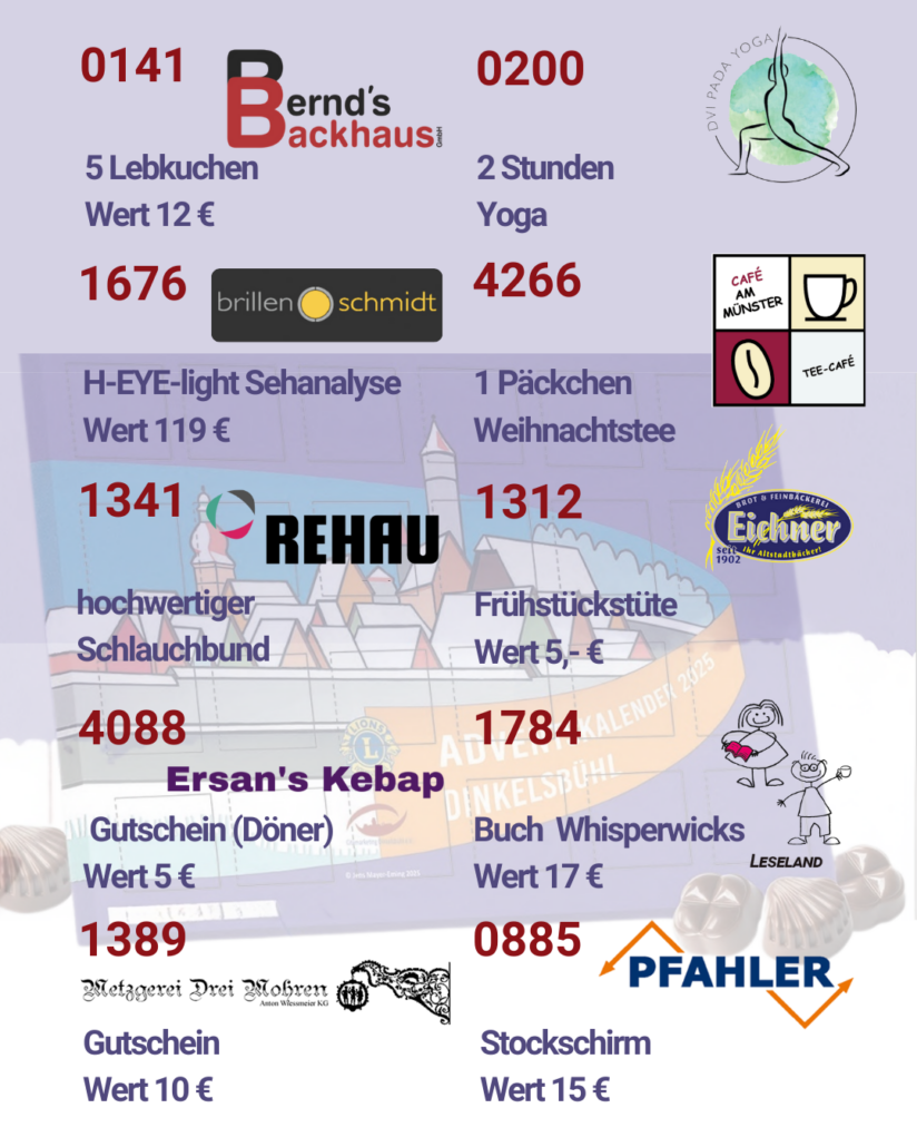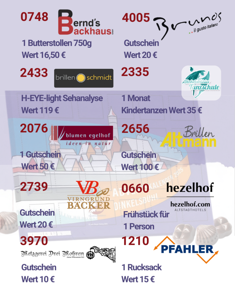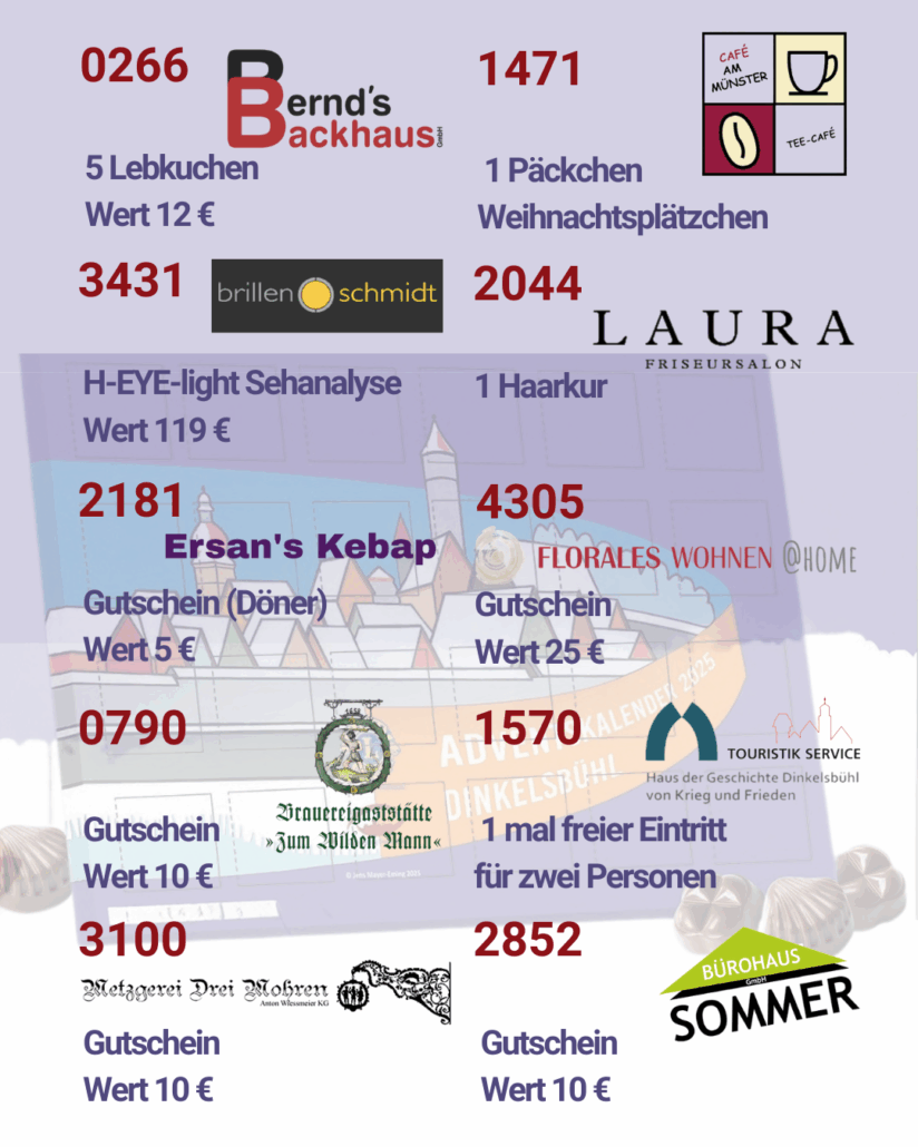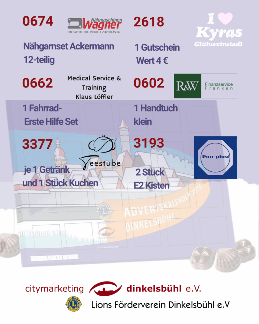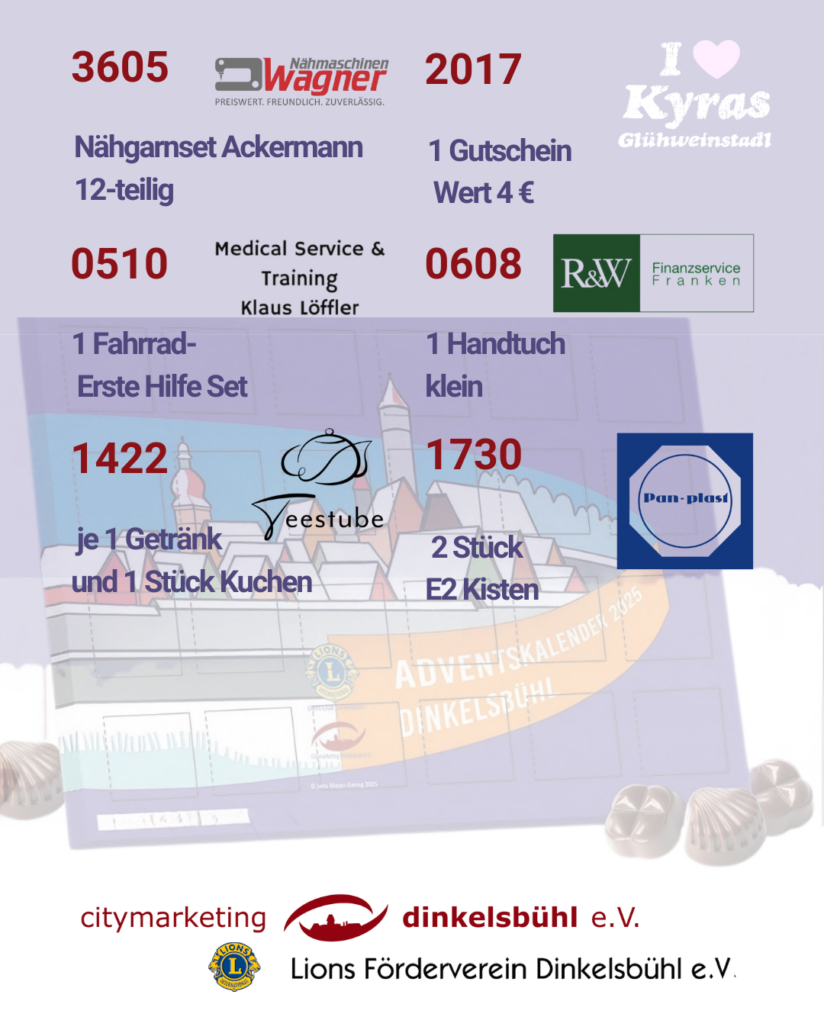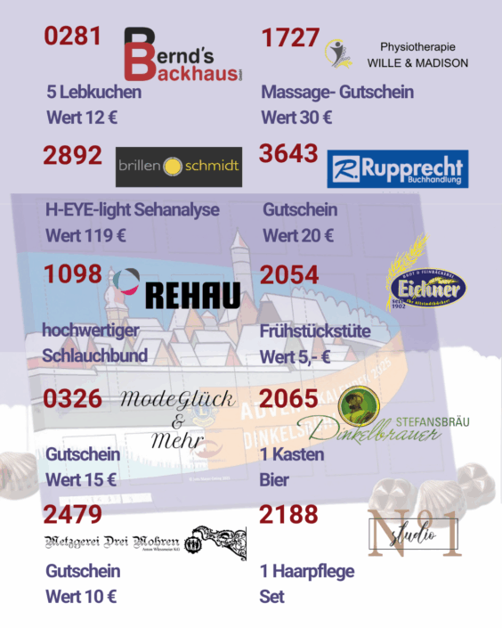 Dinkelsbühler Adventskalender – Gewinne und Gewinn- Nummern